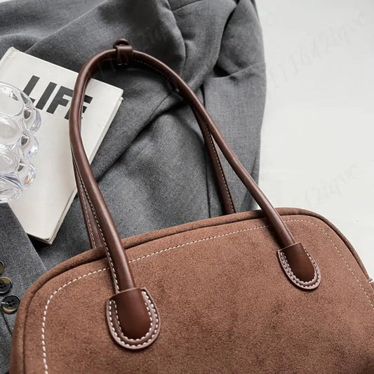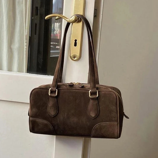 Zamszowa torebka na ramię z długimi rączkami