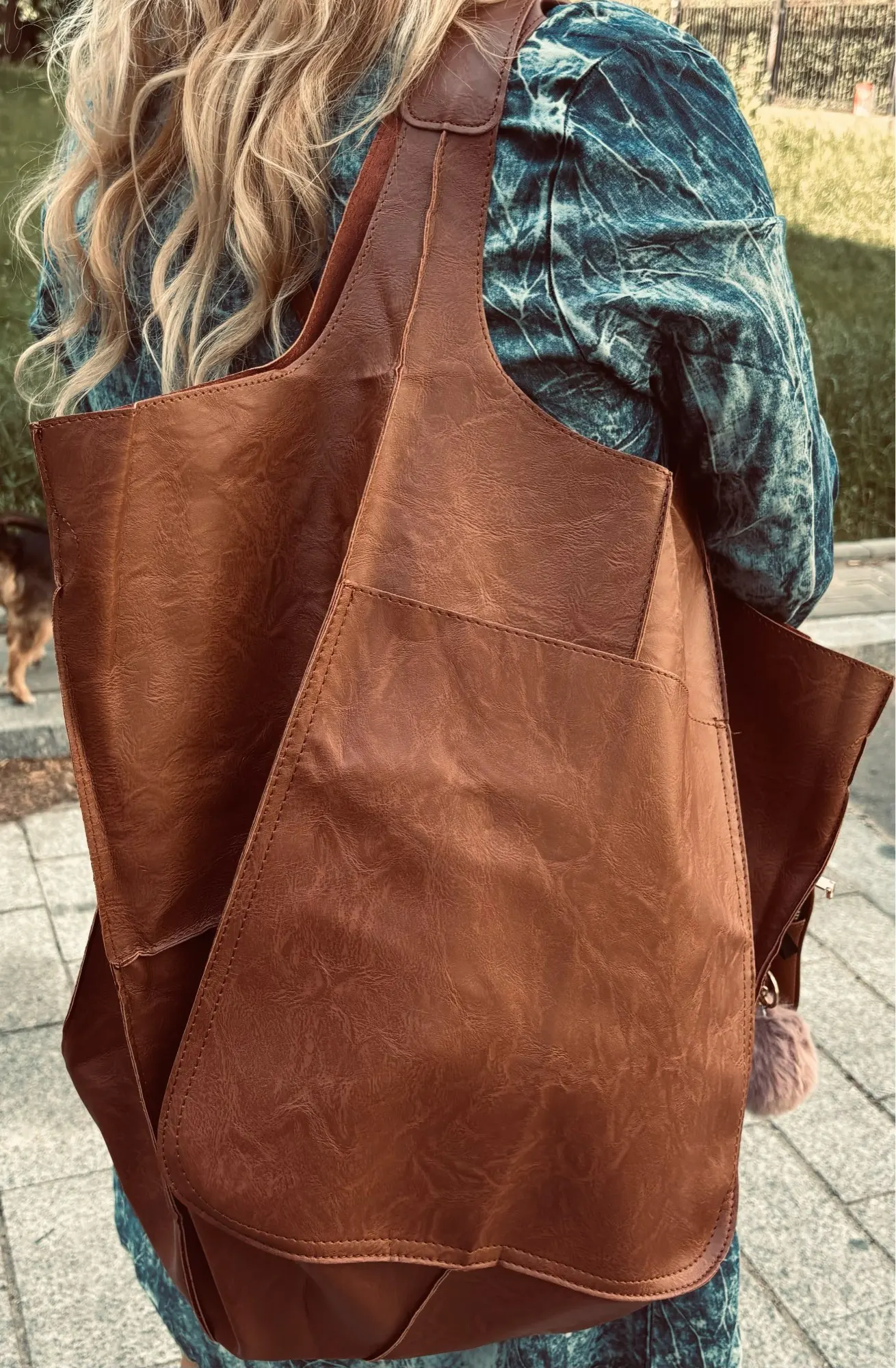 Duża skórzana torba shopper z kieszenią