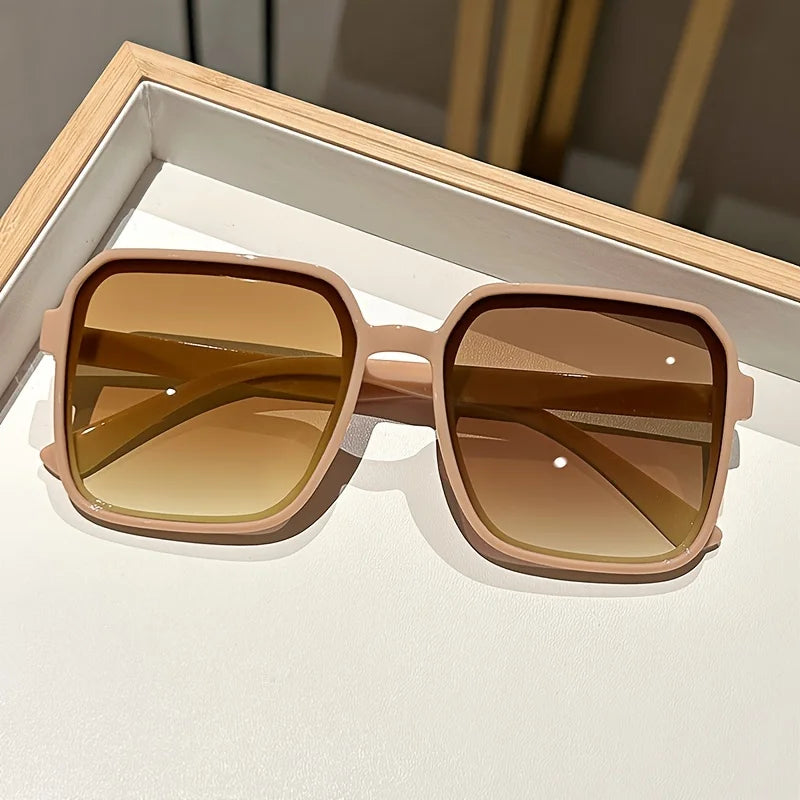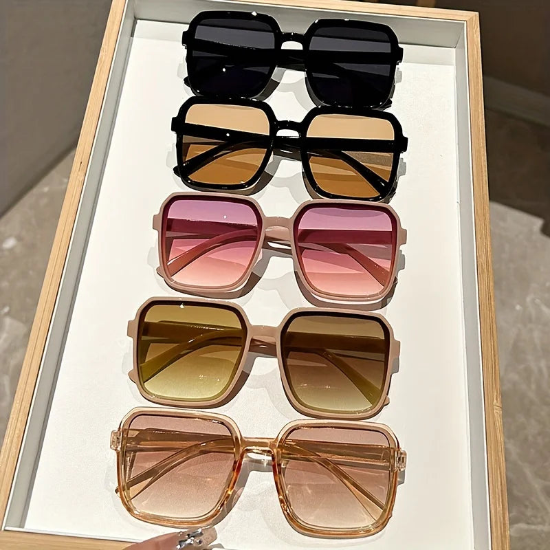 Duże, wyraziste okulary o kwadratowej oprawce, w intensywnych wersjach kolorystycznych – od fioletu, żółci, błękitu po pomarańcz. Gradientowe lub jednobarwne szkła dodają im charakteru, a oversize’owy kształt wpisuje się w klimat vintage i streetwear. Oprawki są grubsze, geometryczne, często z wyraźną górną linią i prostymi zausznikami, co daje modowy efekt retro glam.