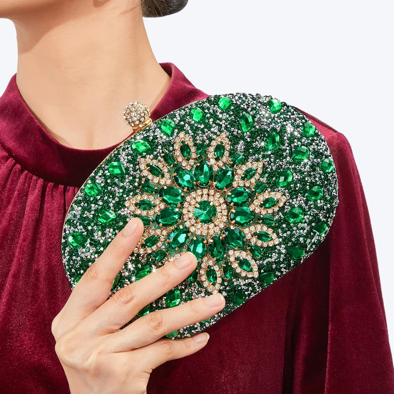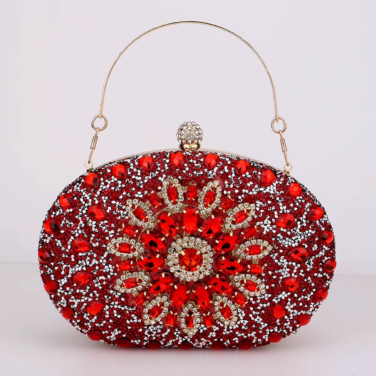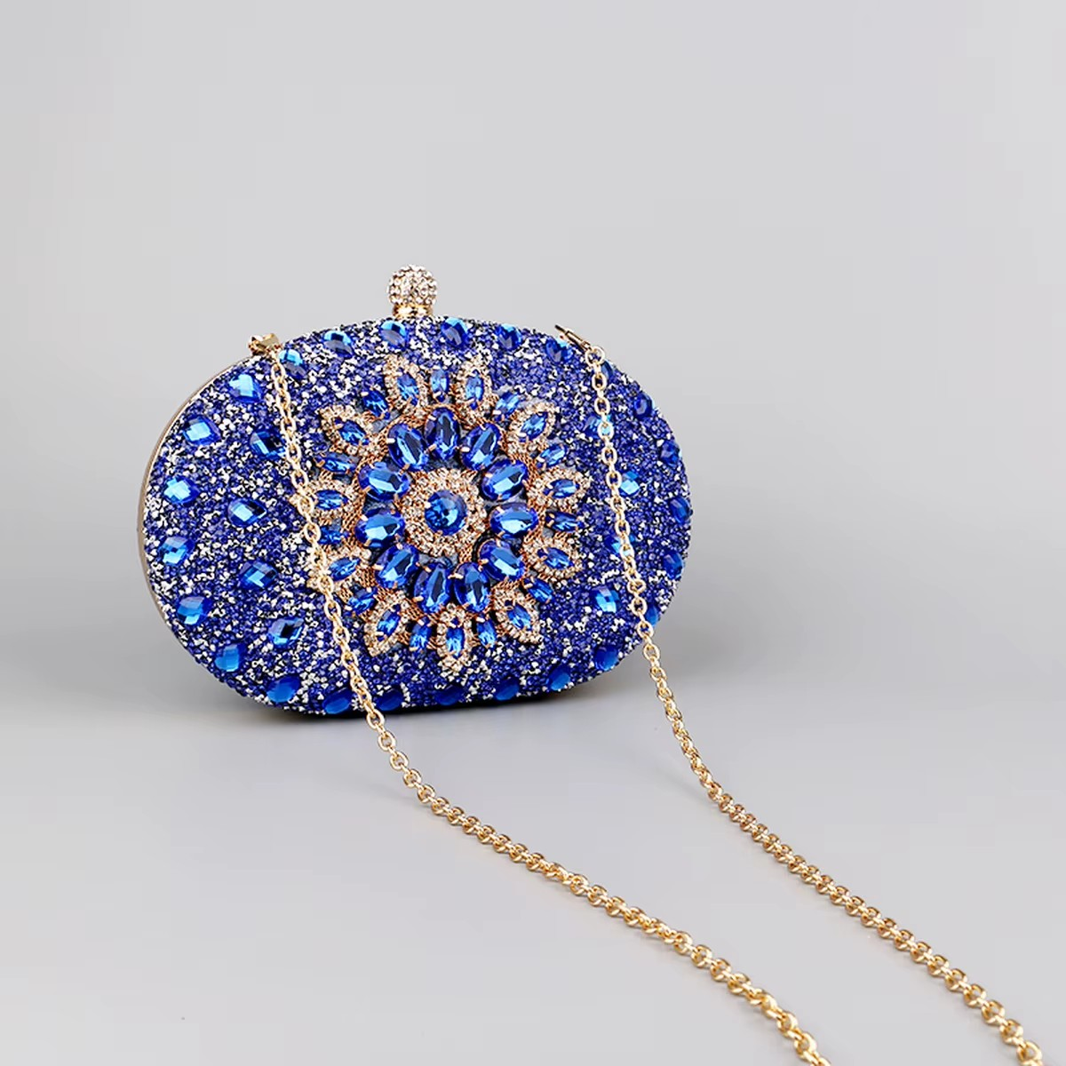 Ta metalowa kopertówka to kwintesencja elegancji i wyrafinowania. Bogato zdobiona kryształami, zachwyca swoim efektownym blaskiem, czyniąc każdą stylizację wyjątkową. Idealna na wyjścia, przyjęcia i eleganckie okazje. W komplecie łańcuszek, który pozwala nosić ją na ramieniu lub w dłoni. Dostępna w piętnastu wariantach kolorystycznych, aby idealnie dopasować się do Twojego stylu.