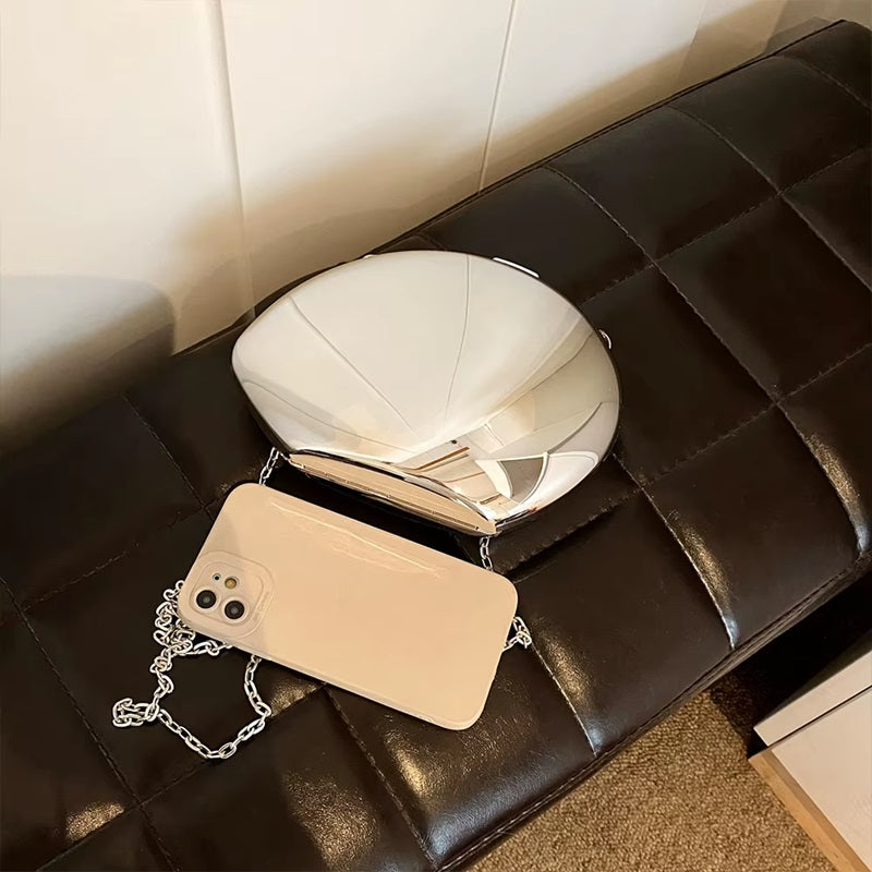 Zachwyć elegancją z metalową kopertówką w kształcie muszli, idealną na wyjątkowe okazje. Jej błyszcząca powierzchnia i wyjątkowy design sprawią, że wyróżnisz się na każdej imprezie. Dostępna w dwóch wariantach kolorystycznych, doskonale dopełni wieczorową stylizację.