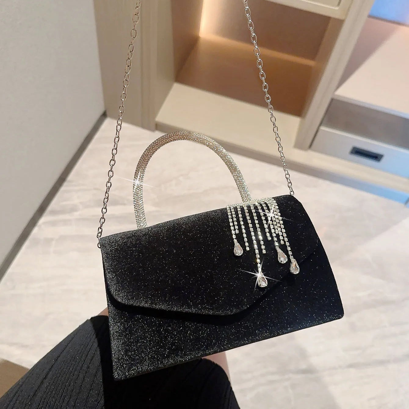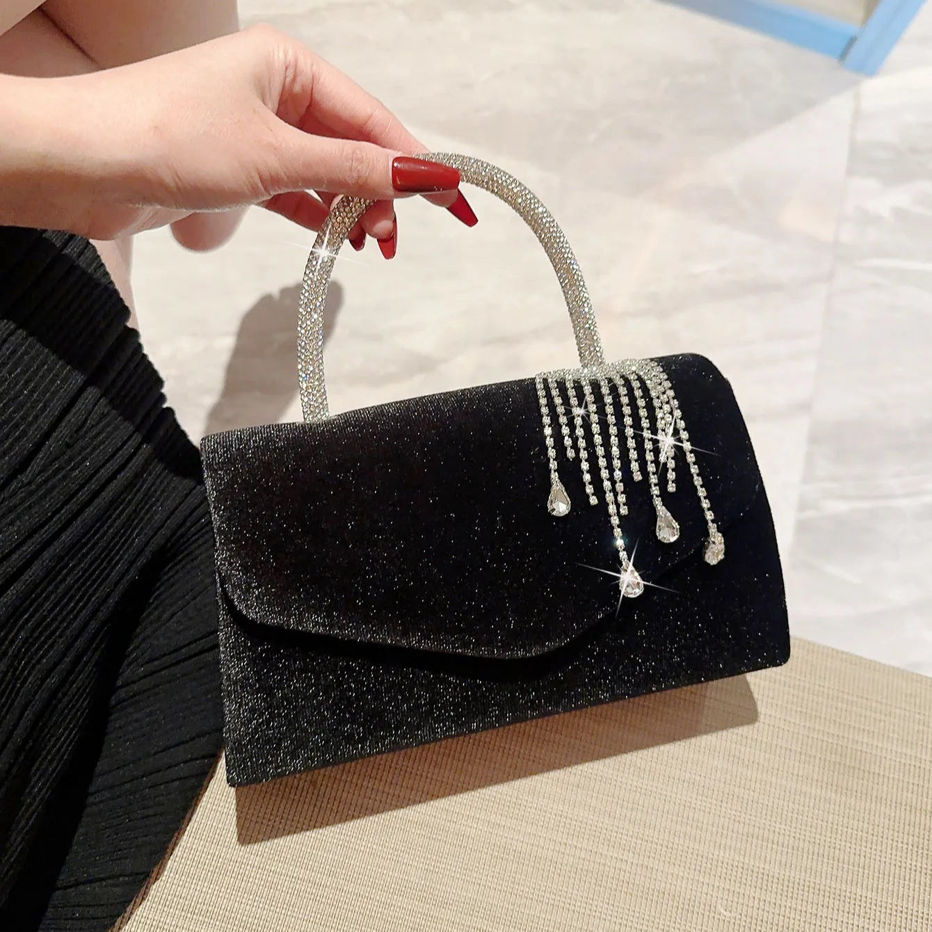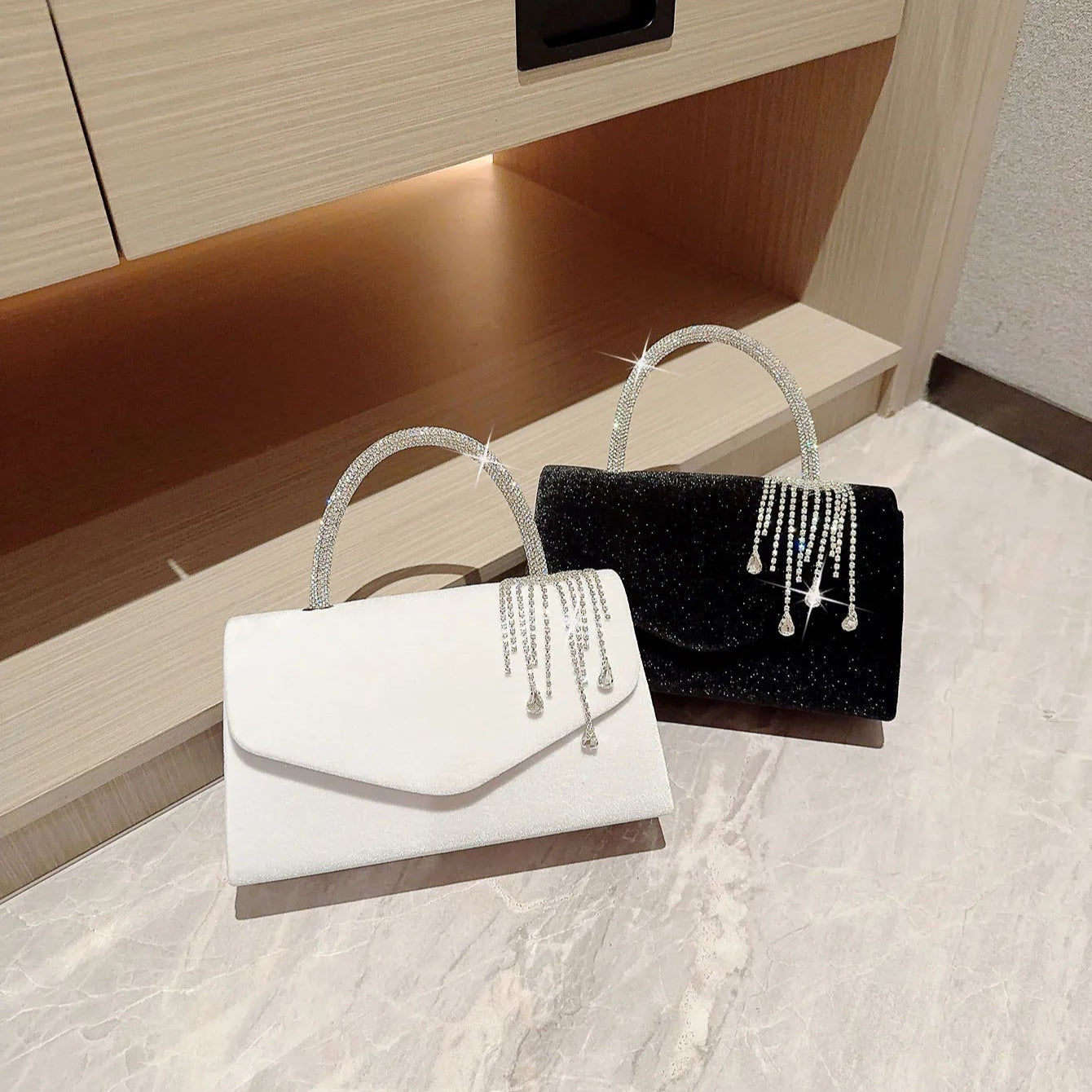 Dodaj blasku swoim stylizacjom z małą wieczorową torebką, ozdobioną lśniącymi kryształkami. Dostępna w dwóch wariantach kolorystycznych, stanowi idealne uzupełnienie eleganckich kreacji. Perfekcyjny wybór na wyjątkowe okazje!