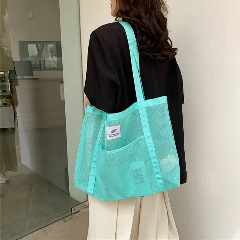 Szukasz praktycznej i stylowej torby na plażę? Nasza siateczkowa torba plażowa na ramię to idealne rozwiązanie na upalne dni. Przewiewna, ultralekka i niezwykle pojemna – zmieścisz w niej wszystko: ręcznik, kosmetyki, wodę i przekąski. Świetnie sprawdzi się także na zakupy lub letnie wycieczki.