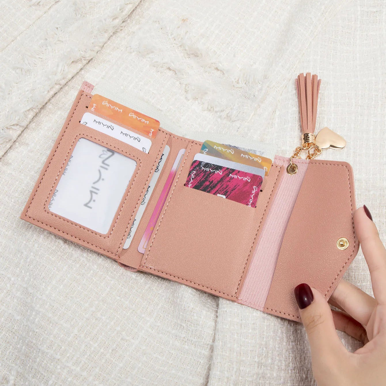 Składane etui na karty z frędzlami