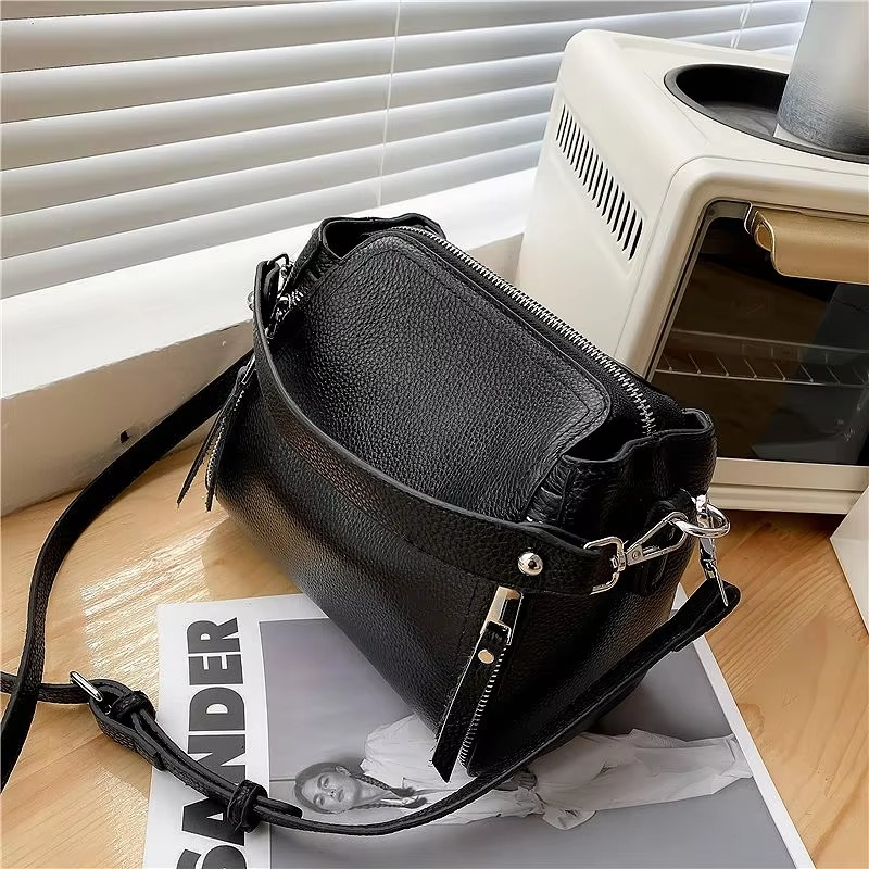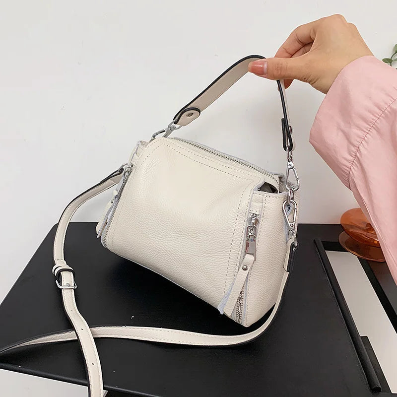 Elegancka skórzana torebka z efektownymi ozdobnymi suwakami, które nadają jej nowoczesnego charakteru. Idealna zarówno na co dzień, jak i na wyjątkowe okazje. Dostępna w czterech wariantach kolorystycznych, dzięki czemu z łatwością dopasujesz ją do swojego stylu.