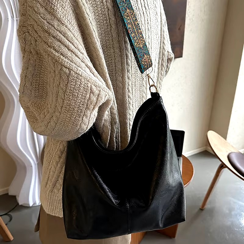 Torba na ramię ze zdobionym paskiem to stylowy dodatek w klimacie Vintage, łączący elegancję z funkcjonalnością. Wyróżnia się dużą pojemnością i szerokim, ozdobnym paskiem, zapewniającym wygodę noszenia. Idealna na co dzień i do pracy. Dostępna w czterech wariantach kolorystycznych.