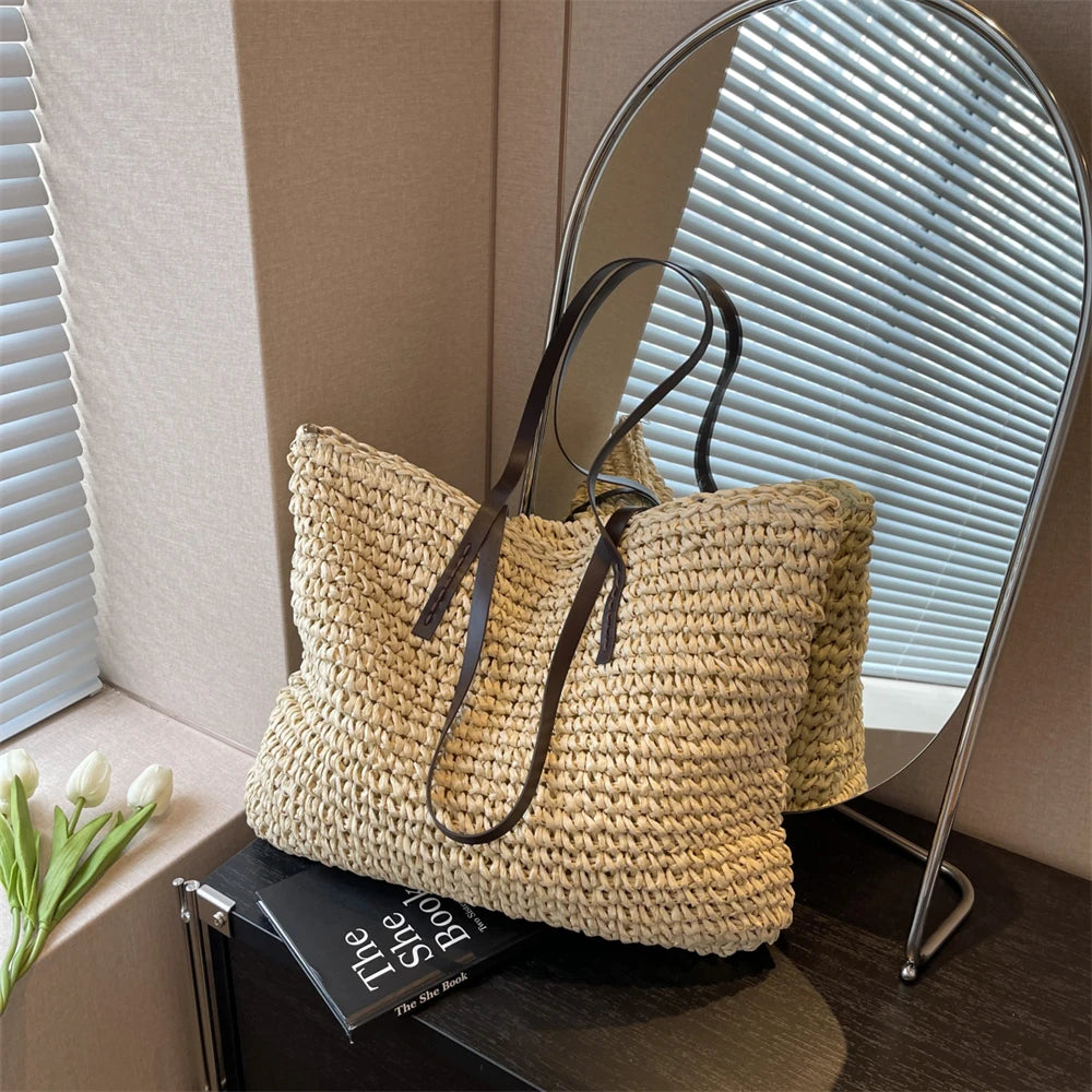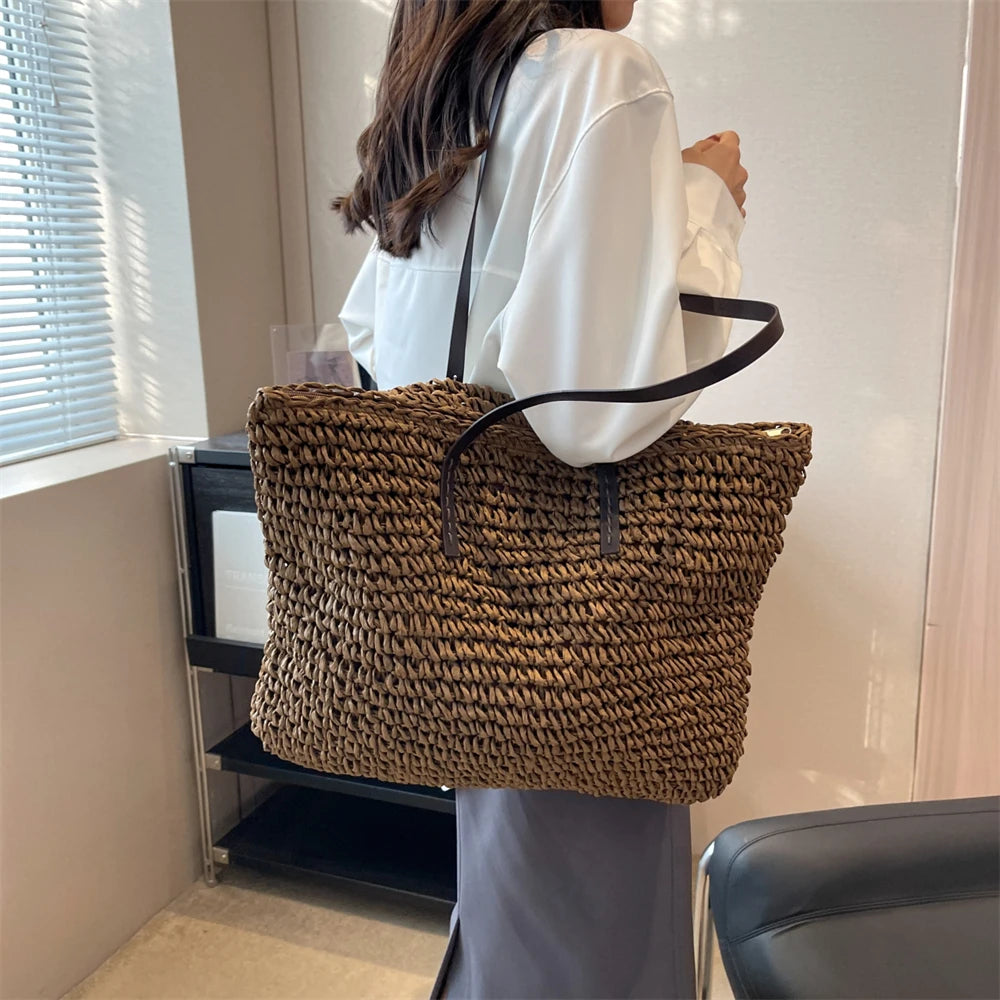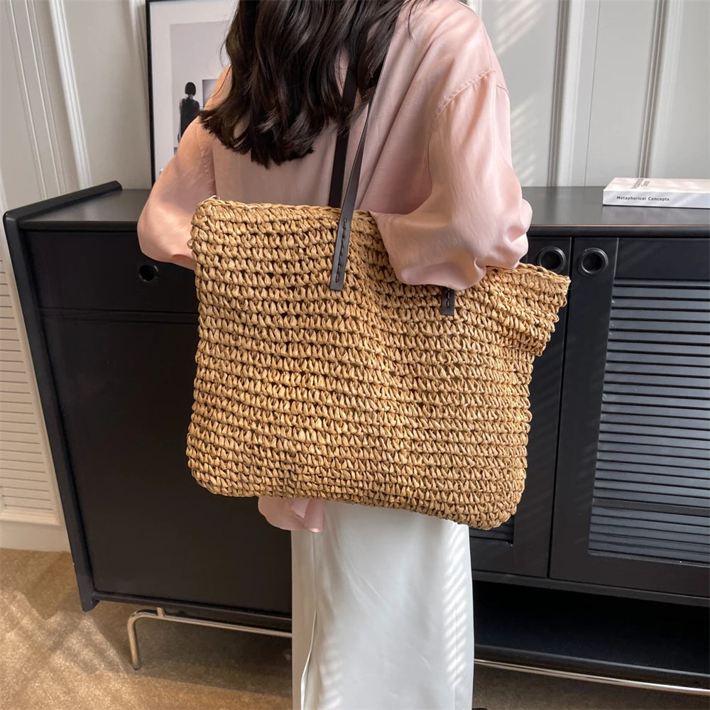Torba łączy w sobie estetykę i funkcjonalność: jest wystarczająco pojemna, by pomieścić wszystko, czego potrzebujesz na plaży lub podczas letniego spaceru – od ręcznika, przez okulary przeciwsłoneczne, aż po książkę. Jej pleciony charakter i naturalne barwy dodają każdemu outfitowi wyjątkowego uroku w stylu boho.