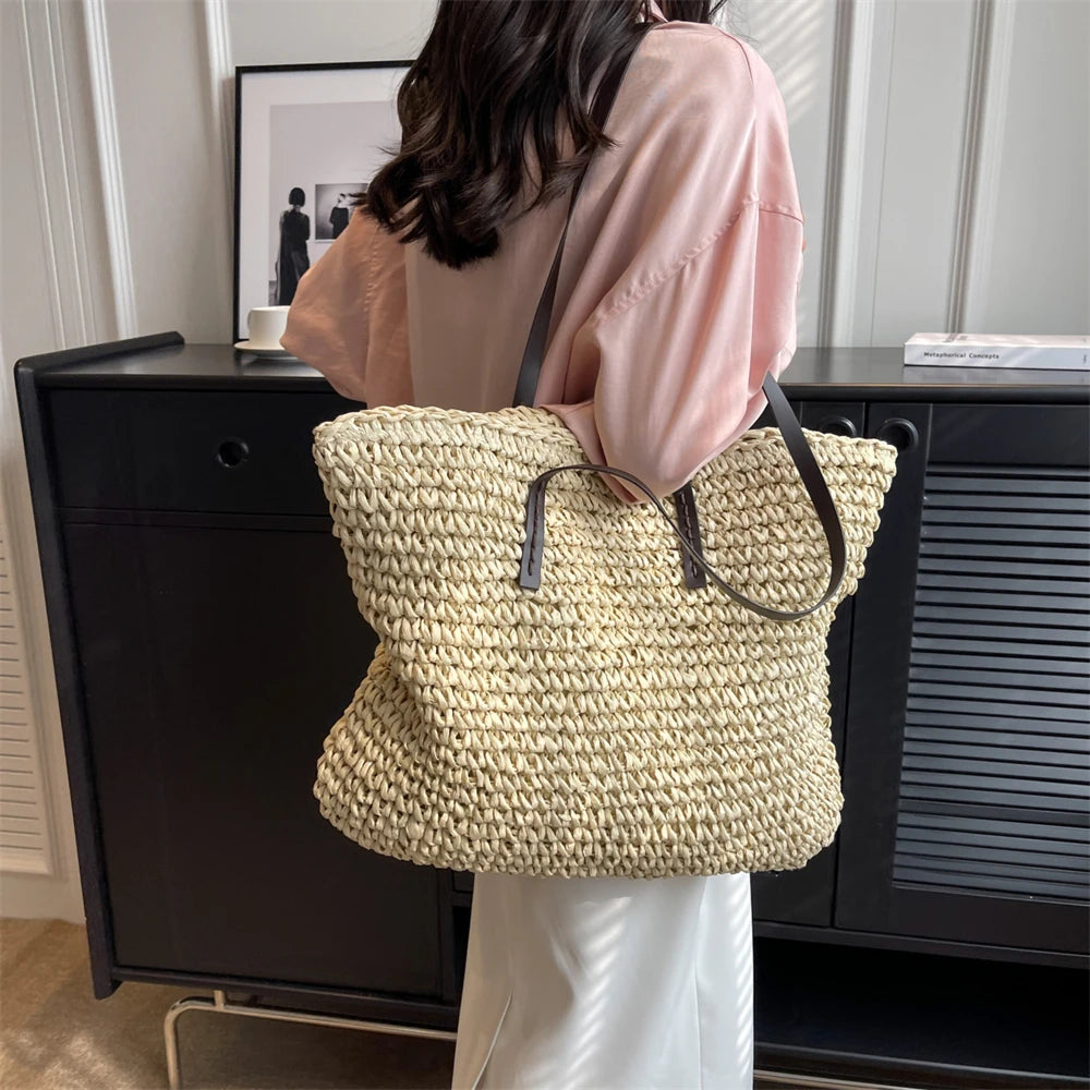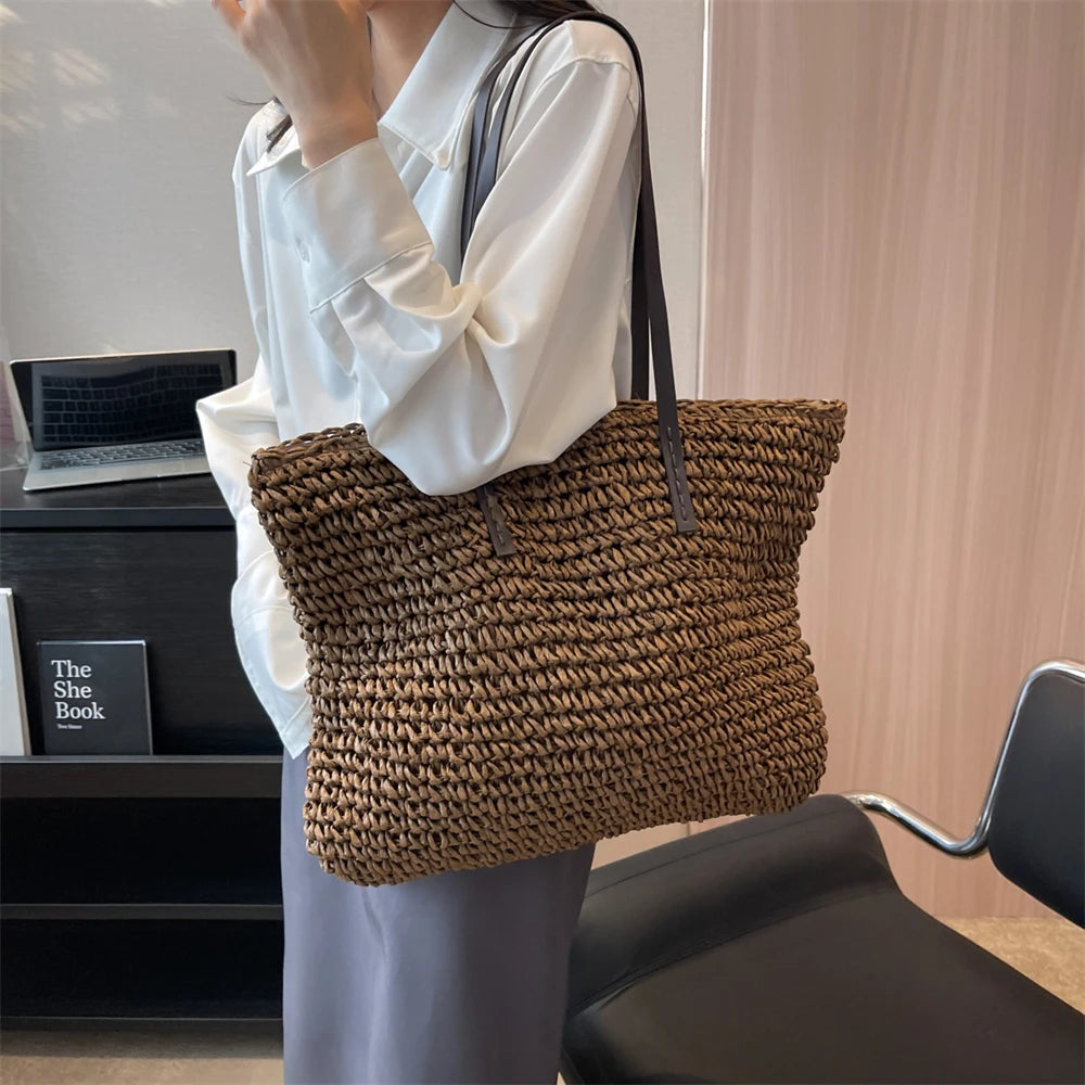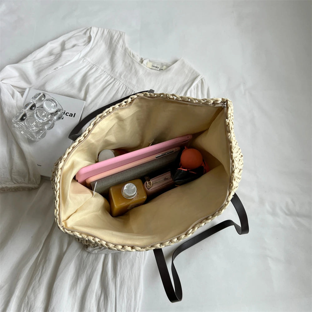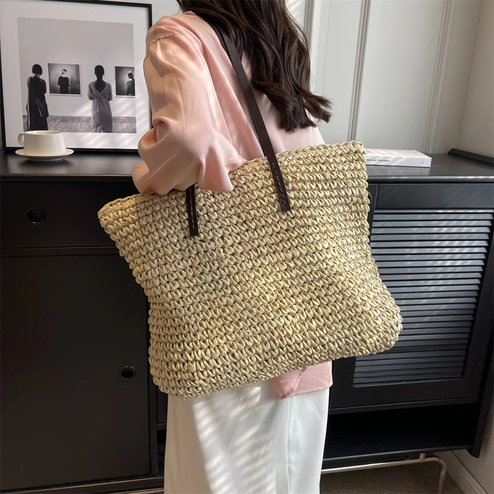 Torba łączy w sobie estetykę i funkcjonalność: jest wystarczająco pojemna, by pomieścić wszystko, czego potrzebujesz na plaży lub podczas letniego spaceru – od ręcznika, przez okulary przeciwsłoneczne, aż po książkę. Jej pleciony charakter i naturalne barwy dodają każdemu outfitowi wyjątkowego uroku w stylu boho.