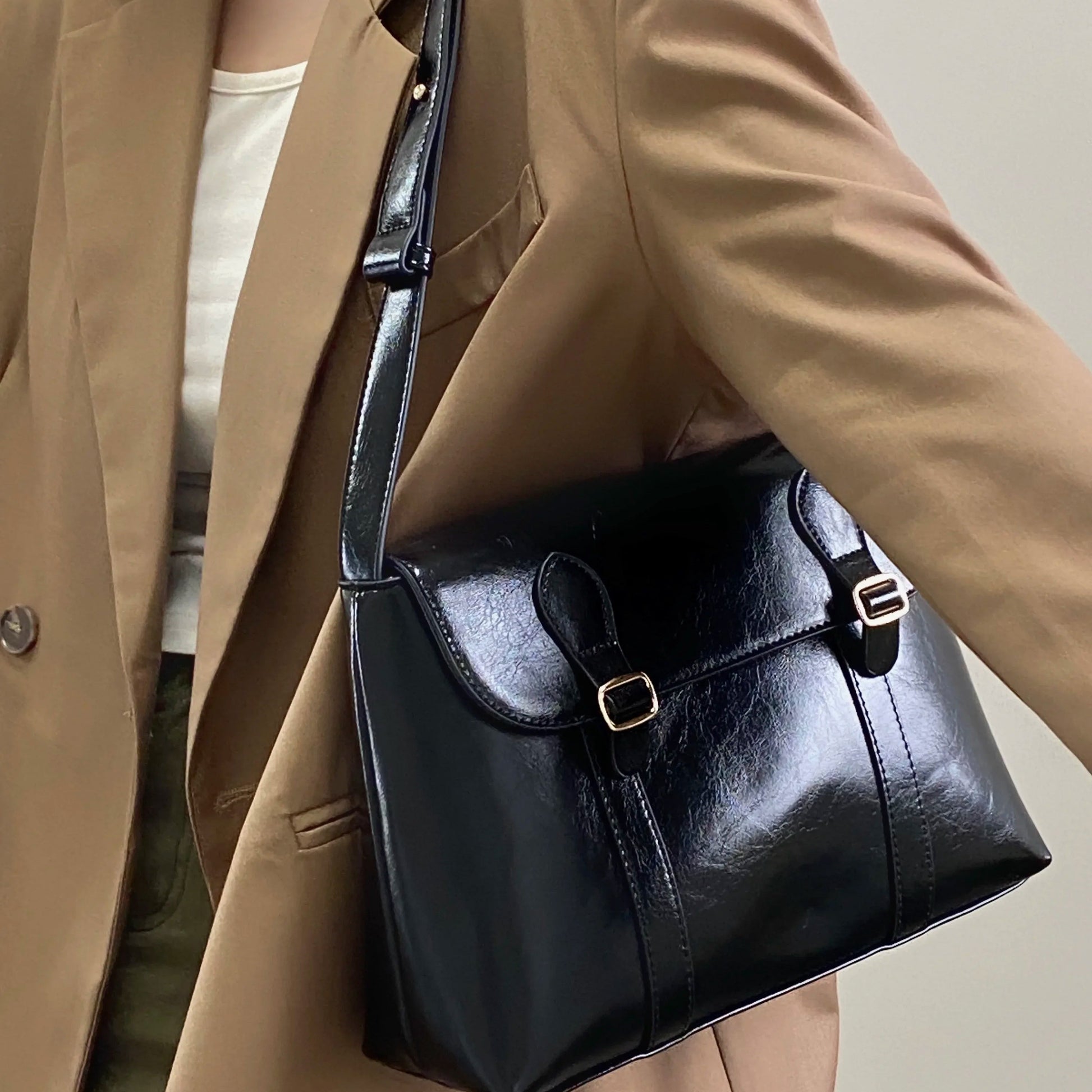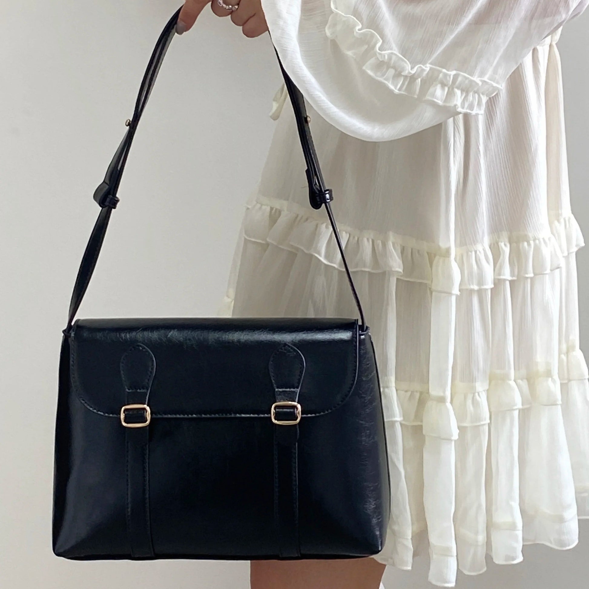 Torebka listonoszka z klapą i klamerkami